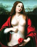 Avala el éxito inicial de María Magdalena, el que su aspecto personal, de larga cabellera pelirroja, ya se representó entre los piadosos frescos de Dura Europos (Siria) durante el siglo III, o sea, mucho antes que a cualquier otro apóstol, puesto que ellos no alcanzaron suficiente importancia, ni tampoco la tuvo la mismísima Virgen María. Después, por incontables campañas de desinformación por parte del clero católico, y debido a que los aspirantes a sacerdote -en el mejor de los casos- salían de los seminarios mal informados, María Magdalena fue la contrafigura de la Madre de Jesús, consiguiendo confundirse con ella. Afortunadamente, algunos artistas del Renacimiento, supieron dejar constancia de un aprecio que sobrepasa mucho lo que fue dogmatizado por la Iglesia católica hacia ella.