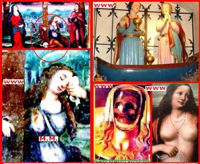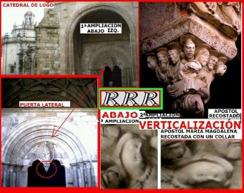 Tanto los cátaros como los templarios. y tantos otros seguidores, habrían intentado -clandestinamente- salvaguardar lo que era muy evidente, y ocultaron su verdad tras la definición: la "Novia perdida", en un vano intento de reinstaurar el Linaje divino después de tantos siglos. Las imágenes de la Magdalena, incluso las de tez clara, son todas bellísimas, y de entre ellas prefiero la de la iglesia de Laguardia (Navarra), cuyo frontispicio, por cierto, es casi igual que el de la colegiata de la ciudad de Toro. Su advocación es Santa María de los Reyes. Se presenta de pie, con su supuesto hijo en el parteluz de la entrada, y los laterales están decorados con imágenes de los doce apóstoles, todos ellos todavía bellamente policromados y de tamaño natural.